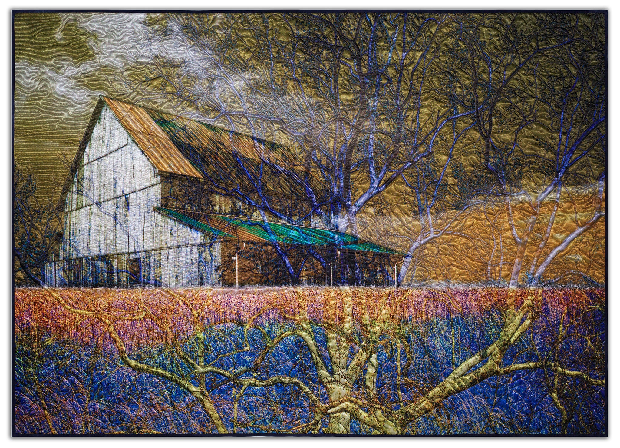 Original photos digitally printed on satin polyester fabric, artist snow-dyed and shibori-dyed cotton and silk fabrics, and cotton batting. Quilted with silk thread.Pair text with an image to focus on your chosen product, collection, or blog post. Add details on availability, style, or even provide a review.